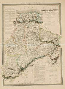 1836. DUFOUR: CASTILLA LA NUEVA CON LAS NUEVAS DIVISIONES. Paris: En casa de Bulla, 1836. Grabado al cobre coloreado. 67 x 95 cm. Montado en cartoné. [Más:] Idem CASTILLA LA VIEJA.