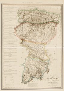 1837. MAPA DEL REYNO DE LEON Y DEL PRINCIPADO DE ASTURIAS. Paris: en la casa de Bulla, 1837. Grabado al cobre coloreado. 84 x 57 cm. plancha; 94 x 67 cm. papel. Faltas en la esquina superior que no afectan al mapa. Procedentes del Atlas Nacional de...