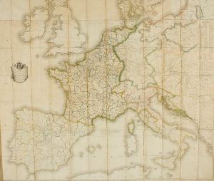 1812. (POSTAS-EUROPA). TARDIEU: CARTE DES ROUTES DE POSTES DE L´EMPIRE FRANÇAIS, DU ROYAUME DE L´ITALIE ET DE LA CONFEDERATION DU RHIN. S.l: Ed. Postes & Relais, 1812. Grabado al cobre coloreado, plegado y entelado. 124 x 141 cm. A pesar de no...