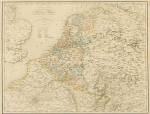 1816. (RUTAS-PAISES BAJOS). NOUVELLE CARTE DU ROYAUME DES PAYS BAS ET PAYS LIMITROPHES ... La Baije: Van Baarsel et fils, 1816. Grabado al cobre coloreado. 48 x 63 cm.