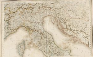 1816. CARTE STATISTIQUE, POLITIQUE, ET MINERALOGIQUE DE L´ITALIE. Paris: dpt. Genéral de la Guerre, 1816. Grabado coloreado. Mapa compuesto de 2 hojas de 62 x 100 cm. cada una. Fino taladro y sutiles manchas de óxido. Detalle de la isla de...