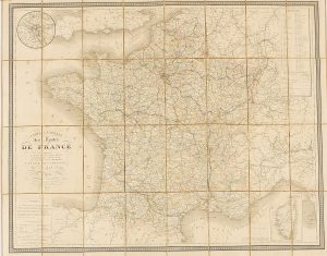 1845. (FRANCIA-RUTAS). ANDRIVEAU, J.: CARTE ROUTIERE DE FRANCE EN KILOMETRES: routes de porte, routes royalesm départamentales, chemins de fer, avec les distances en kilomètres à l´usge du voyageur. Paris: chez Andriveau Goujon, 1845. Mapa...