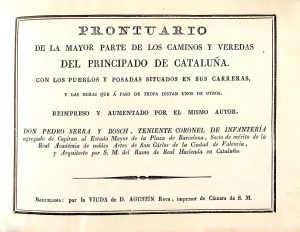 1814. (ITINERARIOS-CATALUNYA). SERRA Y BOSCH, PEDRO: PRONTUARIO DE LA MAYOR PARTE DE LOS CAMINOS Y VEREDAS DEL PRINCIPADO DE CATALUÑA. Con los pueblos y posadas situados en sus carreras, y las horas que a paso de tropa distan unos de otros....