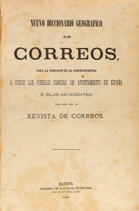1867. (FILATELIA-ITINERARIOS). NUEVO DICCIONARIO GEOGRAFICO DE CORREOS, PARA LA DIRECCION DE LA CORRESPONDENCIA A TODOS LOS PUEBLOS CABEZAS DE AYUNTAMIENTO DE ESPAÑA E ISLAS ADYACENTES. Publicado por la Revista de Correos. Madrid: Imp. de D. Carlos...