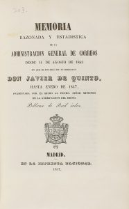 1847. (FILATELIA-CORREOS). QUINTO, JAVIER DE: MEMORIA RAZONADA Y ESTADISTICA DE LA ADMNISTRACION GENERAL DE CORREOS DESDE 14 DE AGOSTO DE 1843. Madrid: en la Imprenta Nacional, 1847. [Más:] EL CONSULTOR POSTAL DEL COMERCIO Y GUIA GENERAL DE...