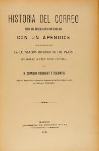 1894. (CORREOS). VERDEGAY Y FISCOWICH, E.: HISTORIA DEL CORREO DESDE SUS ORIGENES HASTA NUESTROS DIAS CON UN APENDICE QUE CONTIENE LA LEGISLACION DE LOS PAISES QUE FORMAN LA UNION POSTAL UNIVERSAL. Madrid: Imp. Rojas, 1894. 4º. 480 p. Enc. media...