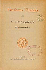 1895. (FILATELIA). THEBUSSEM: FRUSLERIAS POSTALES. Madrid, Sucesores de Rivadeneyra, 1895. 8º mayor. XV-317 páginas, 1 tabla plegada. Media piel con nervios y doble tejuelo. Primera edición de esta recopilación de artículos relativos al correo....
