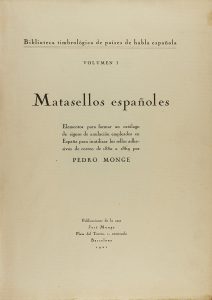 1922. (FILATELIA). MONGE: MATASELLOS ESPAÑOLES. ELEMENTOS PARA FORMAR UN CATALOGO DE SIGNOS DE ANULACION EMPLEADOS EN ESPAÑA PARA INUTILIZAR LOS SELLOS ADHESIVOS DE CORREO DE 1850 A 1869. Barcelona, 1922. Folio.141 p. Papel de hilo. Rústica...
