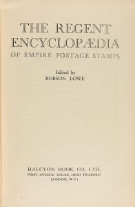 1935. (FILATELIA GRAN BRETAÑA). LOWE, ROBSON: THE REGENT ENCYCLOPEDIA OF EMPIRE POSTAGES STAMPS. London: Halcoy Book Co., 1935. Enc. en tela editorial. Ejemplar con autógrafo de Robson Lowe.