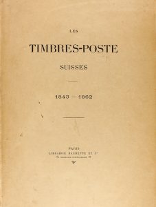 1899. MIRABAUD; REUTERSKIOLD: LES TIMBRES-POSTE SUISSES 1843-1862. Paris: Librairies-Imprimeries Reuunies, 1899. 271 p. Ilustraciones en el texto. Papel de hilo con barbas. Enc. en plena piel decorada con el escudo de Suiza en mosaico en el plano y...