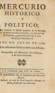 1795. CONJUNTO DE 6 VOLUMENES DE MERCURIO DE ESPAÑA. Madrid: Imp. Real, 1795-1805. [Más:] 8 VOLUMENES DE MERCURIO HISTORICO Y POLITICO. Mdrid: en la Imprenta de Antonio Marin, 1760.