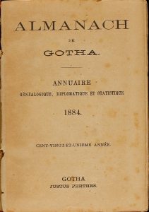 1884. (ALMANAQUE). ALMANACH DE GOTHA. Gotha: Justus Perthes, 1884. 12º. Enc. en tela editorial.