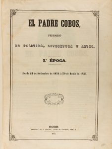 1855. EL PADRE COBOS, periodico de politica, literatura y artes. I y II Epoca. Madrid: Imp. de A. Vicente, 1855. Folio mayor. Comprende desde 24 de Septiembre de 1854 a 30 de Junio de 1856. Enc. en media piel. Buen estado de conservación.