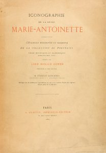 1883. ICONOGRPHIE DE LA REINE MARIE-ANTOINETTE. Catalogue descriptif et raisonné de la collection de portraits, pièces historiques et allégoriques, caricatures, etc., formée par lord Ronald Gower. Précédée d´une lettre par G. Duplessis....