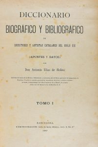 1889. (BIOGRAFIAS AUTORES). NOLINS ELIAS DE: DICCIONARIO BIOGRÁFICO Y BIBLIOGRÁFICO DE ESCRITORES Y ARTISTAS CATALANES DEL SIGLO XIX. (APUNTES Y DATOS). Barcelona, Administración, [imp. de Fidel Giró], 1889. 2 vol. Texto a dos columnas....