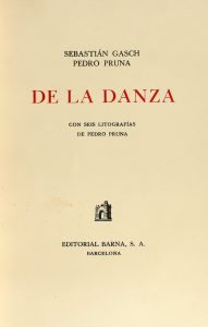 1946. (DANZA). GASCH, SEBASTIAN; PRUNA, P. (ILUSTRADOR): DE LA DANZA. Barcelona: Editorial Barna, 1946. 4º menor. 290 páginas, 4 h. Con gran número de ilustraciones y seis litografías de Pedro Pruna. Enc. en plena piel, cejas, ruedas y cantos...