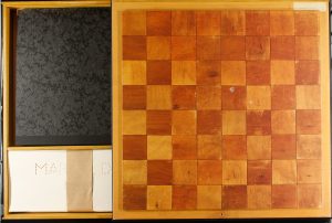 1991. (FACSIMIL-ARTE). DUCHAMP; RONNY VAN DE VELDE [creador del conjunto]: MARCEL DUCHAMP. Antwerp: Ronny Van de Velde Gallery, 1991. Elegante carpet en mosaico de madera que contiene el facsímil de ALLEGORIE DE GENRE (1943); DOOR FOR GRADIVA...