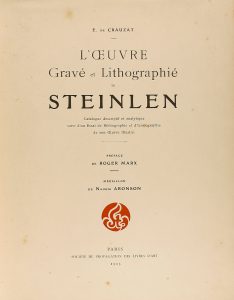 1913. (GRABADOS). CRAUZAT, E. DE: L´OEUVRE GRAVÉ ET LITHOGRAPHIÉ DE STEINLEN. CATALOGUE DESCRIPTIF ET ANALYTIQUE SUIVI D´UN ESSAI DE BIBLIOGRAPHIE ET D´ICONOGRAPHIE DE SON OEUVRE ILLUSTRÉ. PRÉFACE DE ROGER MARX. MÉDAILLON DE NAOUM ARONSON....