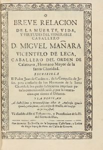 1732 ca. (BIOGRAFIA). CARDENAS, JUAN DE: BREVE RELACION DE LA MUERTE, VIDA Y VIRTUDES DEL VENERABLE CABALLERO D. MIGUEL MAÑARA VICENTELO DE LECA, CABALLERO DE LA ORDEN DE CALATRAVA, HERMANO MAYOR DE LA SANTA CHARIDAD. Sevilla: Imp. Castellana y...