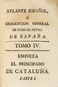1781. (HISTORIA). ESPINALT Y GARCIA, BERNARDO: ATLANTE ESPAÑOL Ó DESCRIPCION GENERAL DE TODO EL REYNO DE ESPAÑA. TOMOS IV Y V. Madrid: Imp. Antonio Fernandez, 1781. Dos vol. en 8º menor. I: Un mapa, 4 h., 373 p. ilustr. con grabados en el texto....