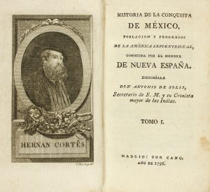 1798. (COLONIZACION MEXICO). SOLIS, ANTONIO DE: HISTORIA DE LA CONQUISTA DE MEXICO. Madrid: Cano, 1798/1799. 5 Vols. 8º. I: XLVIII, 251 p.; II: 316 p.; III: 304 p.; IV: 303 p.; V: 268 p. Enc. en plena piel de época, doble tejuelo, lomo con...