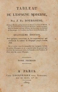 1807. (HISTORIA ESPAÑA). BOURGOING, J. FRANÇOIS: TABLEAU DE L´ESPAGNE MODERNE. 4éme édition. Avec quelques corrections, et des augmentations qui conduisent le tableau de l´Espagne jusqu´a l´année 1806. Paris: Chez Tourneisen Fils, 1807. ...