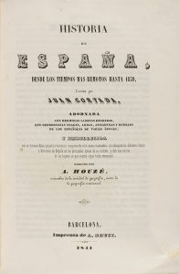 1841. (HISTORIA ESPAÑA). CORTADA, JUAN: HISTORIA DE ESPAÑA. Desde los tiempos más remotos hasta 1839. Barcelona: Imprenta de A. Brusi, 1841-42. 3 tomos en 2 vols. en 4º menor. I: 573 p., 2 h.; II: 474 p., 2 h. + 429 p., 3 h. Adornada con 35...