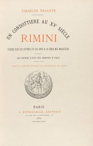 1882. (ENCUADERNACION). YRIARTE, CHARLES: UN CONDOTTIERE AU XV SIECLE. RIMINI. Etudes sur les lettres et les arts a la cour des Malatesta d´après les papiers d´État des Archives d´Italie. Paris: J. Rothschild, Ed., 1882. Folio menor. 200...