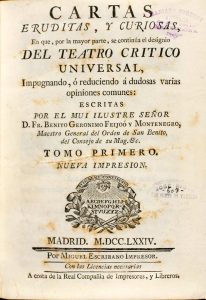 1773, 1774 y 1786. (HUMANIDADES). FEIJOO Y MONTENEGRO, BENITO GERÓNIMO: CARTAS ERUDITAS, Y CURIOSAS. Madrid: Imp. Miguel Escribano, Pedro Marin, Real Gazeta, Benito Cosculluela y Joachim Ibarra, 1773, 1774 y1786. 5 vol. en 8º mayor. I: XXXVI + 375...