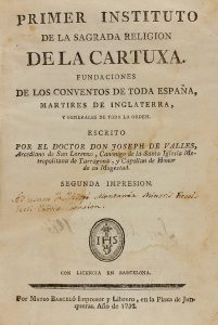1792. (CARTUJANOS). VALLES, JOSEP DE: PRIMER INSTITUTO DE LA SAGRADA RELIGIÓN DE LA CARTUXA. FUNDACIONES DE LOS CONVENTOS DE TODA ESPAÑA, MARTIRES DE INGLATERRA, Y GENERALES DE TODA LA ORDEN. SEGUNDA IMPRESIÓN. Barcelona, Mateo Barceló, Impresor...