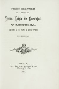 1885. (BRUGALLA). CARVAJAL, LUISA DE: POESIAS ESPIRITUALES DE LA VENERABLE... Sevilla: Imp. y Lib. de A. Izquierdo y Sob., 1885. 8º menor. 149 p. Enc. por Brugalla en 1942 en media piel. Tejuelo. Conserva la rústica original. Ex-libris del...