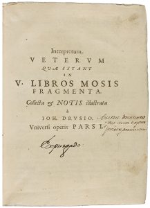 s.a. (RELIGIO). DRUSIO, IOH.: INTERPRETUM VETERUM QUAE EXTANT IN V. LIBROS MOSIS FRAGMENTA. Pars I. [Sigue:] ITERPRETUM VETERUM QUAE EXTANT IN PROPHETAS ANTERIORES IOSUAM, IUDICES, II LIBROS SAMUELEIS, II LIBROS REGUM FRAGMENTA. PARS II. [Sigue:]...