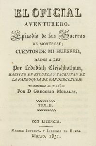 1831. (LITERATURA-BRUGALLA). SCOTT, WALTER; CLEISHBOTHAM, LEDEDIAH: EL OFICIAL AVENTURERO. EPISODIO DE LAS GUERRAS DE MONTRESE; CUENTOS DE MI HUESPED. Trad. por Gregorio Morales. Madrid: Imp. y Libr. de Bueno, 1831. 2 vols. en 16º. I: XV + 329 p.;...