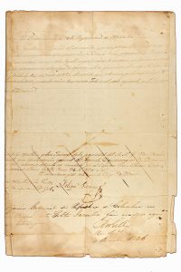 territorios unidos de Venezuela, y Nueva Granada (Colombia) y a los que luego se añadieron Panamá y Educador. El vicepresidente de esta república fue Francisco de Paula Santander, cuya firma aparece en varios de los documentos. El primero de ellos una patente de corso con la firma del vicepresidente y un raro sello lacrado de la Gran Colombia. Las patentes de corso de esta república son escasísimas. Muchos de los documentos también llevan la firma del secretario de Estado Mayor José Manuel Restrepo, como el siguiente documento en el que se dispone la pena de muerte para aquellos que conspiren contra la nueva república a la vez que establece una recompensa para las poblaciones que ayuden a impedir esta práctica. Varios de los documentos hacen referencia al golpe de estado contra Simón Bolívar que tuvo lugar en 1828 y por el que fue acusado el vicepresidente Francisco de Paula, hacen referencia a su detención, a su defensa y su exilio. Otros documentos hablan de una rebelión encabezada por Jose Maria Córdova, algunos otros del conflicto marítimo con Perú y diferentes conflictos internos que fueron configurando la atribulada y corta historia de esta república. De los conflictos marítimos hay varios que hablan de las fragatas y su armamento, así como de su tripulación, de manera que se puede reconstruir la dotación de una fragata del s. XIX. El país se disolvió por las grandes diferencias políticas entre centralistas y federalistas y las tensiones entre los pueblos que lo integraban. Este conjunto de documentos constituye un repaso de esta historia, a la vez que un pequeño archivo de gran rareza.