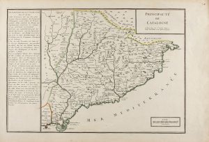 s. XVII. (CATALUNYA). FER: PRINCIPAUTE DE CATALOGNE. Mapa grabado al cobre, límites coloreados de época. 25 x 35 cm. Texto descriptivo en el margen izquierdo...