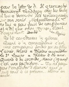 Il évoque l’envoi par la valise diplomatique d’un paquet de trois Bilitis avec une lettre. Nouvelles de la famille d’Épernay. Il raconte sa visite au « malheureux » Alfred à Igny-le-Jard... « J’ai payé la plus grande partie de ce que je devais, mais pas tout encore », avec le détail : « il me reste donc trois libraires (600 en tout), un tailleur (180 ??), le Mont de Piété (140)… et mon terme du 15 janvier. Tout cela peut attendre mon retour ». Il a supprimé les étrennes qui n’étaient pas indispensables. « Je n’ai envoyé de chocolats qu’à Mme Gautier et aux petites Heredia, que j’ai vues plus de dix fois dans la seconde quinzaine de décembre » ; il a aussi vendu de l’argenterie : « Je vais partir demain pour Séville avec un peu moins de 500 francs »... Il lui envoie une « grande chronique de Ginisty sur Bilitis. […] L’article est très aimable, mais il y a malheureusement des citations criblées de fautes idiotes »... Il termine en parlant de la « canacadémie » fondée par les filles de Heredia : l’aînée Hélène, Louise la 3e : « Quand à la seconde, Marie (19 ans) c’est une perfection. – Tu ne peux pas t’empêcher d’observer que je suis voué à ce prénom... même en arabe ». Mille lettres inédites à Georges Louis (2002), p. 139. Reproduit page 49