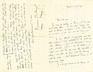Belles lettres à son ami Maurice Pottecher, auteur dramatique et créateur du Théâtre du Peuple à Bussang (Vosges). [Paris] 11 octobre 1910. Il a seulement parcouru sa dernière pièce, mais cela suffit pour l’en féliciter. Lui-même a peu travaillé, ces vacances : « je subis de temps en temps des assauts de Malinconia. La formidable crise morale du temps présent, tout ce vieux monde qui craque, cette tempête qui nous emporte vers un avenir vertigineux, – il y a de quoi donner la fièvre »... Il compte passer l’année à lire et à se recueillir, il ne sait où : la « Potinière » parisienne, « où les petits amours-propres, les petites rancunes, les petites polémiques personnelles, les réclames éhontées, priment l’art véritable », le répugne. « J’ai eu aussi à subir beaucoup de petites méchancetés de la part des critiques musicaux. Ils ne me pardonnent pas La Foire sur la place »... Il explique pourquoi il a refusé la critique musicale à Excelsior... Par ailleurs, Jean-Christophe aussi « passe par une crise »... 8 novembre [1910]. Toujours alité, il souffre beaucoup : « L’examen radiographique a révélé des dégâts plus importants qu’on n’avait cru d’abord. La partie supérieure de l’humérus gauche est en miettes ; et la jambe gauche est aussi fort abîmée. Je suis condamné à l’immobilité pour assez longtemps encore »... [Genève] 16 février 1916. « Ne croyez pas que je m’affecte des attaques contre moi, (comme ma pauvre maman). D’abord, je reçois tant d’encouragements, et de tous les pays, à commencer par le mien, que je serais véritablement un ingrat de me plaindre. Et de plus je n’ai aucune inquiétude sur l’opinion future. Je voudrais hélas ! n’avoir pas plus d’inquiétudes pour mon pays que pour moi. Ma pensée, bien loin d’être ébranlée, s’est encore raffermie depuis que j’ai écrit : Au-dessus de la mêlée »... Il a assisté la veille au meeting de la mission Ford et causé avec quelques délégués. Tout ce qu’on en dit dans la presse est faux : « aucun obstacle n’est capable d’arrêter ces hommes énergiques, ces idéalistes de bonne trempe, qui ont l’habitude des réalités, et disposent de moyens puissants. [...] Vous ne pouvez savoir le bonheur que j’ai eu à les entendre parler. On ne sait plus en Europe ce que c’est qu’un homme libre, avant d’avoir causé avec un de ces citoyens de la grande République. Je doute que je finisse mes jours, de ce côté des mers »... 18 novembre 1918. « En ces jours de bruyante délivrance, ma pensée va aux deuils et aux peines qui ont payé la joie présente, et qu’elle ne paiera jamais. Avant tous, c’est à vous qu’elle va. Un mot seulement pour vous dire que je vous aime bien, – vous et lui »... 13 juillet 1920. Il aime beaucoup le nouveau livre de son ami. « Oui, nous savons, mieux que personne, que le rire est une forme du courage et de la liberté. La liberté de l’âme, qui domine la cruelle sottise du monde et notre propre douleur »... Schoeneck sur Beckenried 7 août 1921. « En ce jour de réouverture du vieux théâtre, – auquel sont attachés tant de vos souvenirs (et aussi, des miens) ma pensée affectueuse s’en va vers vous. Puisse ce jour d’été splendide marquer la date d’une ère féconde, glorieuse pour le Théâtre du Peuple, – et surtout bienfaisante et sereine pour ceux qui en ont toujours été l’âme [...]. Je n’oublie pas quel courage il leur a fallu pour rebâtir l’œuvre et reprendre l’action »...