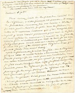 Très belle et longue lettre relative à la publication du Meunier d’Angibault, refusé par Le Constitutionnel, et offert à La Réforme (le traité sera signé le 17 décembre ; Sand recevant 6 000 francs comptants et 2 000 à terme). Louis Blanc avait demandé à Sand des feuilletons pour La Réforme, indiquant que ce journal était pauvre. « Hélas ! je n’ai pas de loisirs, je plie sous le fardeau de dettes et d’embarras énormes que j’ai acceptés parce qu’il y avait devoir personnel pour moi à le faire. Ce sont affaires de conscience, d’amitié et de famille, réunies, qui n’intéressent que moi et dont je ne vous fatiguerai pas. Mais vous me croirez, j’espère, si je vous dis que je n’aime pas l’argent, bien que je sois forcée d’en avoir besoin. […] Malgré tout cela je ferai même l’impossible pour la Réforme ; je le crois et je l’espère parce que je le veux, parce que la Réforme est le seul journal qui m’intéresse vivement et dont j’espère de grands biens pour la cause démocratique »... Elle explique qu’elle avait signé un traité avec Louis Véron « pour un certain nombre de volumes moyennant une somme considérable. Au second roman présenté à Mr Véron, mes tendances qu’il appelle communistes lui firent tant de peur, qu’il me chercha chicane, puis reconnut qu’il n’avait pas de droits sur ma pensée, et, après un échange de lettres où sa déloyauté finit par s’entourer de formes loyales, il me fit des offres d’argent pour m’engager à modifier nos traités, c’est-à-dire mes opinions. Je refusai l’un et l’autre, c’est-à-dire que je lui offris de rompre purement et simplement nos traités, ce qu’il accepta avec joie et reconnaissance, la popularité de mon succès n’étant pas en rapport avec le prix qu’il avait cru devoir y mettre. Il régla lui-même une indemnité pour le roman qu’il avait refusé, et je n’en acceptai pas pour ceux que j’aurais dû lui fournir plus tard. Je suis donc délivrée du Constitutionnel à ma grande satisfaction et je rentre dans la propriété d’un roman en 2 volumes, 24 longs feuilletons qui pourraient être coupés en 30 feuilletons suffisants ». Elle a chargé Hetzel de le placer, et a reçu une offre du National ; mais elle craint que le succès de son roman n’enlève alors des abonnés à La Réforme : « L’abonné est une bête frivole, l’abonné de province un démocrate assez borné, entre nous soit dit, qui ne fait pas toujours la distinction, pourtant si claire, d’une nuance démocratique à une autre. Il est démocrate, il veut un journal démocratique, il en existe deux. Il voit annoncer un roman qui l’ennuyera peut-être, mais dont il imagine qu’il pourra s’amuser, et il quitte le meilleur des deux journaux. Voilà ce dont je ne voudrais pas être cause »… Elle prie donc Louis Blanc de consulter le comité de La Réforme : « voyez s’il lui peut paraître avantageux d’acheter mon roman. Les nécessités fort sérieuses quoique bizarres de ma situation momentanée, me forcent d’aboutir à ce vilain mot d’acheter. J’ai emprunté à des amis pauvres pour sauver des amis plus pauvres. J’ai découvert St Pierre pour couvrir St Paul; et je ne puis pas ne pas payer des dettes sacrées. Je n’ai pas d’amis riches, pas un seul ! Les riches me haïssent. Ce peu de billets de banque dont j’ai absolument besoin est beaucoup pour ceux qui me les ont avancés, et je ne les ai pas. Pourtant à la rigueur, je peux sacrifier mille francs, deux mille francs peut-être pour faciliter l’acquisition de mon roman à la Réforme. […] Tout cela posé, je dois vous dire que mon roman ne vaut pas l’argent qu’on m’en offre, et pas même celui que je suis forcée d’en demander. Le roman est devenu une denrée de mode, exhorbitante, scandaleuse. La nécessité de ne pouvoir faire un peu de bien, qu’à la condition de vivre dans tout ce mal, est une des contradictions de notre vie présente, qui explique assez le spleen dont les rêveurs et les gens de bonne intention sont accablés en attendant des jours moins laids ». Elle demande le secret, et annonce son arrivée samedi à Paris : « Veuillez faire que je trouve une réponse de vous entre les mains de Mr Chopin qui est à Paris cour d’Orléans nº 9, rue St Lazare. Une heure après mon arrivée, je suis bien sûre qu’Hetzel sera chez moi et me pressera de me prononcer ». Elle ajoute : « J’ai achevé votre livre [Histoire de dix ans], c’est un chef-d’œuvre ». Correspondance, t. XXV, S 305.