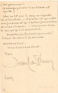 Jean de Tinan (1874-1898). L.A.S., Lundi [fin janvier ou début février 1897, à Pierre Louÿs à Alger] ; 3 pages in-8 à en-tête de la Taverne du Panthéon. Belle lettre inédite. « On commence à imprimer Penses-tu réussir ! à la fin de la...