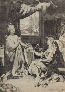 Federico Barocci (1526 - 1612) : L’Annonciation. (Bartsch1). 43,2 x 31cm. Eau-forte. Très belle épreuve de l’état définitif, un peu tardive coupée et remargée, petites amincissures, petits manques, quelques plis et cassures, restauration...