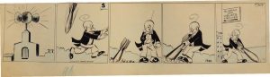 André DAIX (1901-1976) Le Professeur Nimbus. L’obus.Encre de Chine et crayon bleu pour une bande numérotée 1786. Format 50 x 15,5 cm. Signée