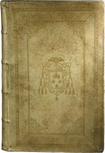 In-folio, titre gravé, (9) ff., 1011 (21) pp., vélin ivoire de l’ép., fil. dor à la Du Seuil, fleurons aux angles, armoiries au centre, dos à nerfs orné, tr. dor. Dédié au pape Urbain VIII. Contient le texte grec des cinq livres de l’Éthique à Nichomaque. Aux armes des Barberini, et probablement d’un cardinal neveu du pape Urbain VIII. Ex-libris grav. Horace de Landau.