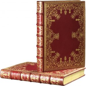 2 vol. in-4, 50 pl. h. t. tirées sur chine, plein maroquin de l’ép., large dent. dor. sur les plats, do à nerfs orné, tr. dor. (Chambolle-Duru). VICAIRE III, 571. Imp. sur vélin teinté.