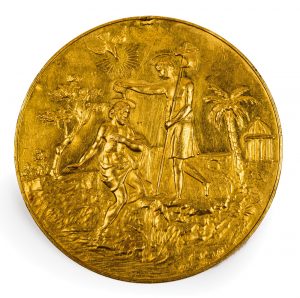 Médaille religieuse. Russie, XVIIIème siècle. • avers : la résurrection du Christ, Воскресение Христово. • revers : le baptême du Christ par Jean. Or. 53,5 cm. Poids : 26,88 g Медаль. Россия,...