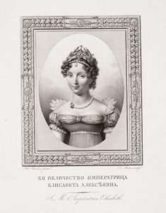 J. Mécou, d’après H. Benner. S. M. l’Impératrice Elisabeth. Saint Pétersbourg, 1817. Gravure sur feuille (37 x 27 cm). Extrait de la Collection de vingt-quatre portraits de la Famille Impériale peints par H. Benner, publiée à Saint...