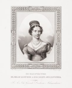 J. Mécou, d’après H. Benner. S. A. I. la Grande Duchesse Alexandrine. Saint Pétersbourg, 1817. Gravure sur feuille (37 x 27 cm). Extrait de la Collection de vingt-quatre portraits de la Famille Impériale peints par H. Benner, publiée à Saint...