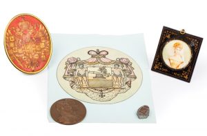 • Boîte contenant quelques empreintes héraldiques Wiazemski.