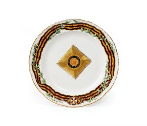 Тарелка из парадного сервиза ордена св. Георгия Победоносца, завод Гарднера, с. Вербилки Московской губернии, 1777-78е гг.