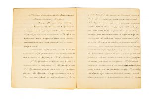 Двадцать три страницы формата in-4, бумага с тисненым штемпелем Императорской петергофской бумажной мануфактуры с шифром Николая I под короной, орешковые чернила. На французском и русском языках.