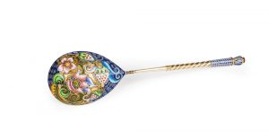 Feodor Ruckert. Cuillère d’apparat en vermeil et émaux cloisonnés. Moscou, 1908 - 1917. Longueur : 20 cm. ◊ MO : ФР ◊ Moscou, K—> 88. Федор РЮККЕРТ. Ложка столовая декоративная. Москва,...